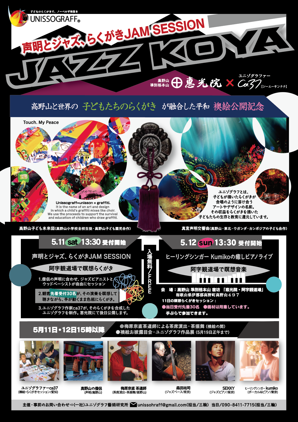 =5月11日(土)、高野山準別格本山・恵光院にて初公開= アフリカ・アジア・東北・高野町の子どもたちのらくがきが合体。 幅3.8mの現代アート襖絵に。