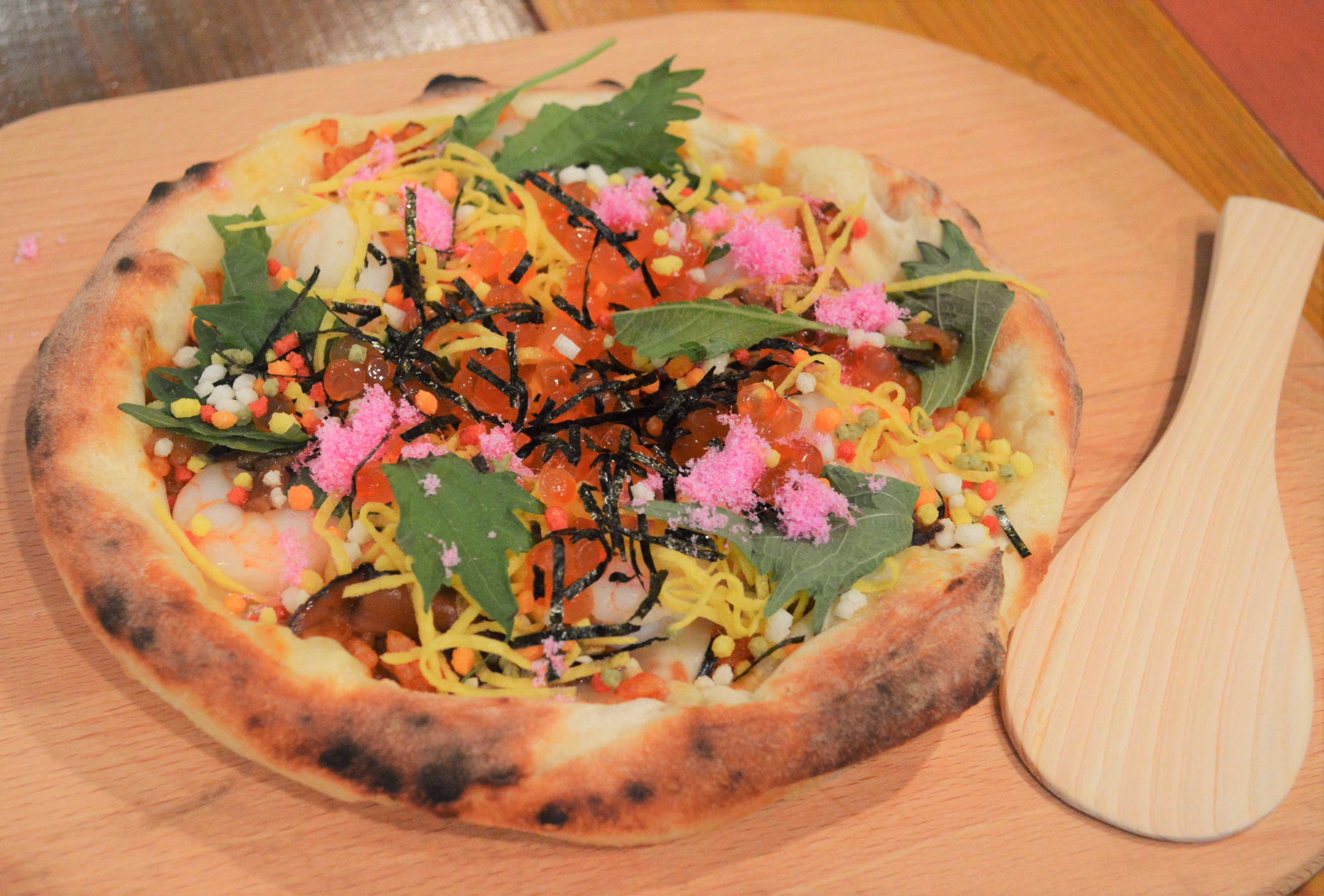 3月3日(日)は雛祭り!“ちらし寿司ピザ”爆誕 錦糸卵に椎茸に…酢飯のようなリゾットもふりかけました 心斎橋のイタリア店で3月1日(金)より提供開始