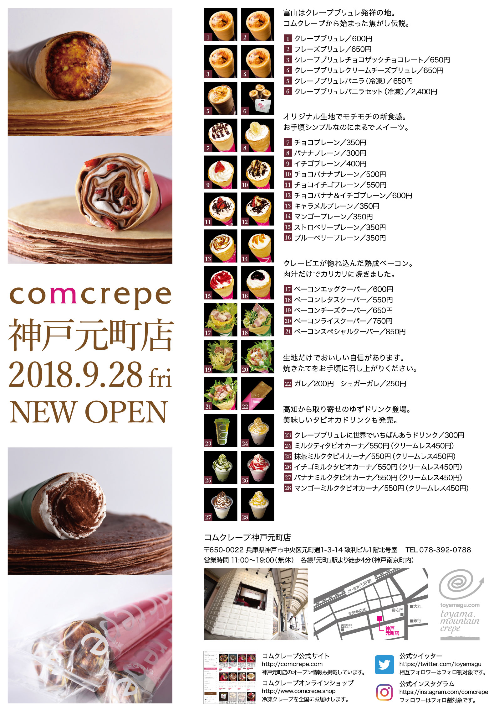 【西日本初・関西初出店】富山で生まれた人気クレープ店 『コムクレープ』9月28日、神戸元町店をオープン。