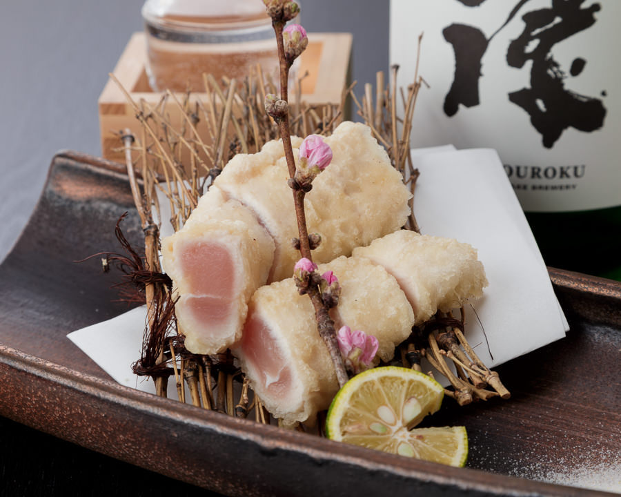 旧暦の七夕、タンパク質たっぷりの〝蒸し天ぷら〟 「ささみ(笹身)のレア天」を 20 食限定で無料に。 熱中症に負けない体づくりに役立つささみ。 その栄養をカラリと揚げることで凝縮。