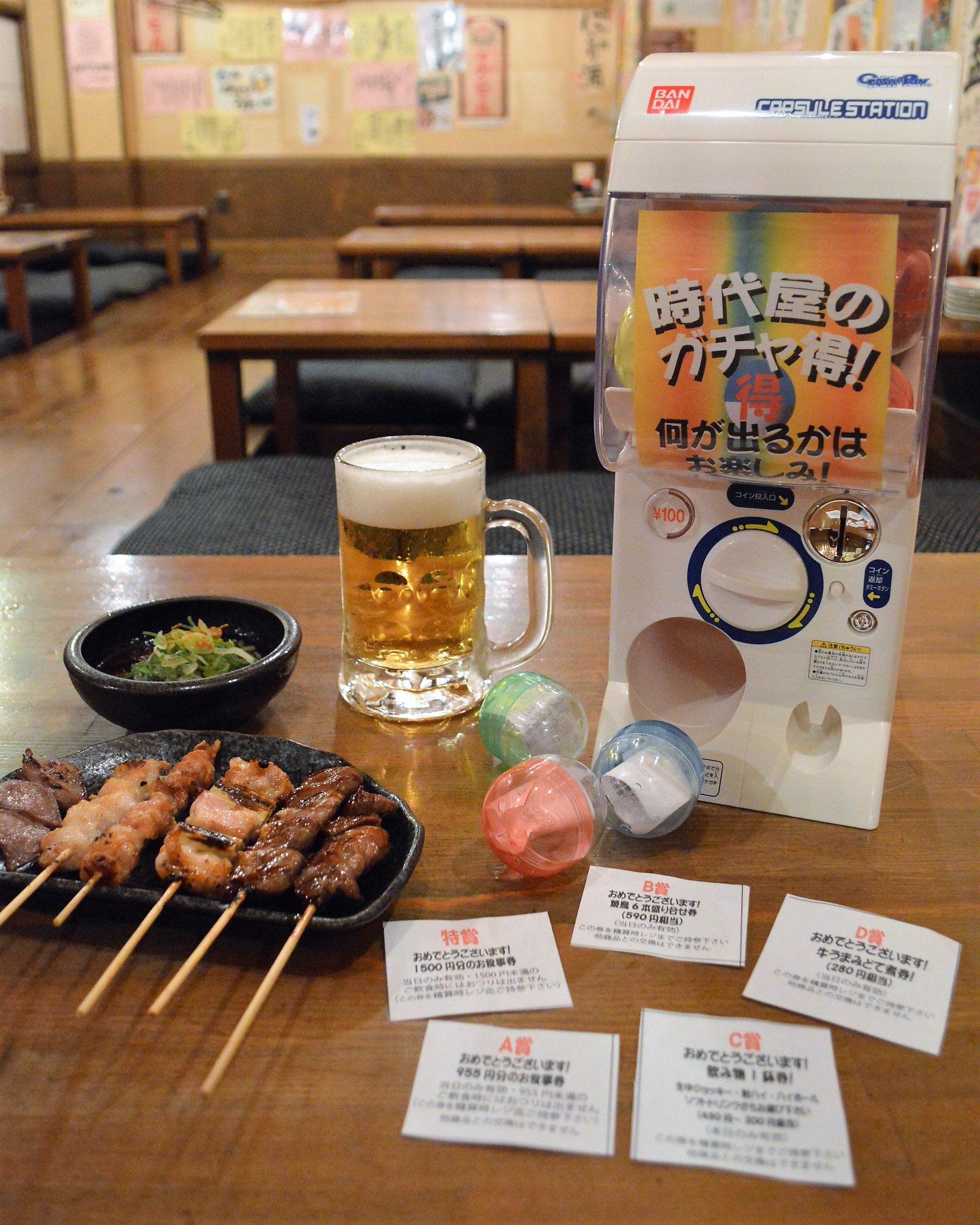 祝15周年!京都・竹田の居酒屋「時代屋」が時代の流れにのります! ガチャガチャを回して注文するメニューを決める「ガチャ得」 2017年11月1日(水)~30日(木)期間限定実施 ~1回100円で、最高1,500円のお食事券も!~