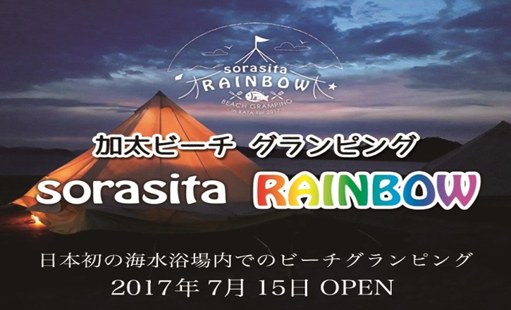 2017年7月15日OPEN 日本初!海水浴場内での宿泊型ビーチグランピング 「 sorasita RAINBOW 」が、 加太海水浴場にNEW OPEN