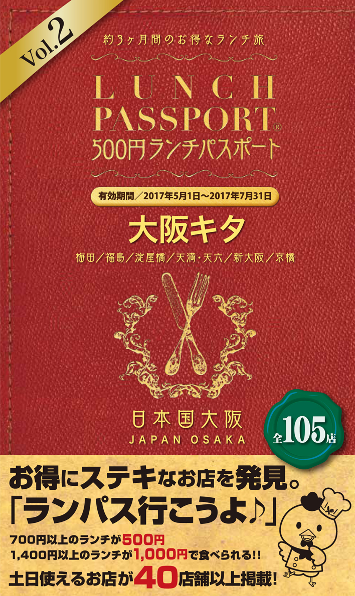 梅田で毎日ランチすれば28,430円もお得!※ 激得ランチブック「ランチパスポート大阪キタ版Vol.2」 5月1日(月)発売決定!