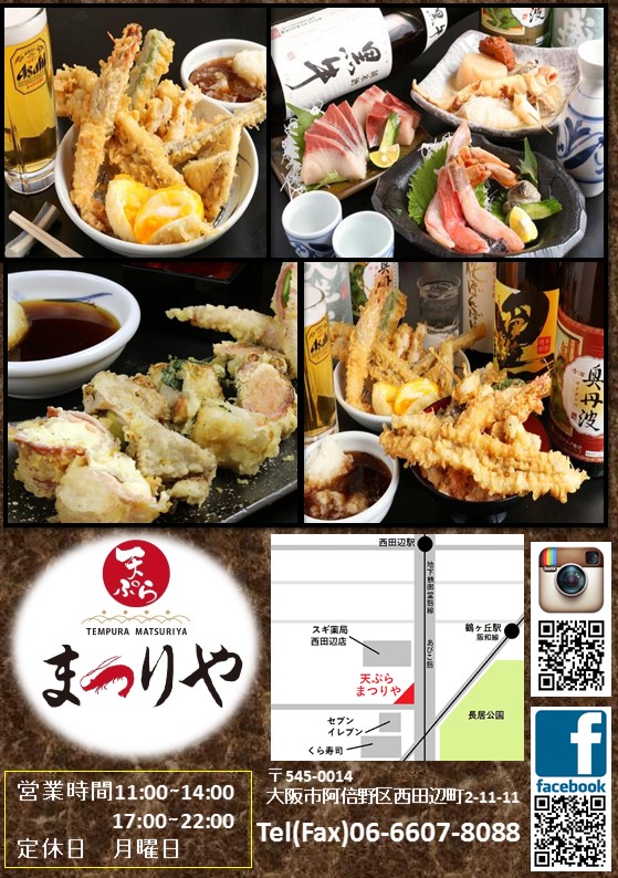 鶴ケ丘駅西口出口から徒歩約4分★堺にある行列のできる店“天ぷら大吉”で修行を重ねた店主が西田辺に天ぷら まつりやとして去年OPEN!4/15で一周年を迎えます。