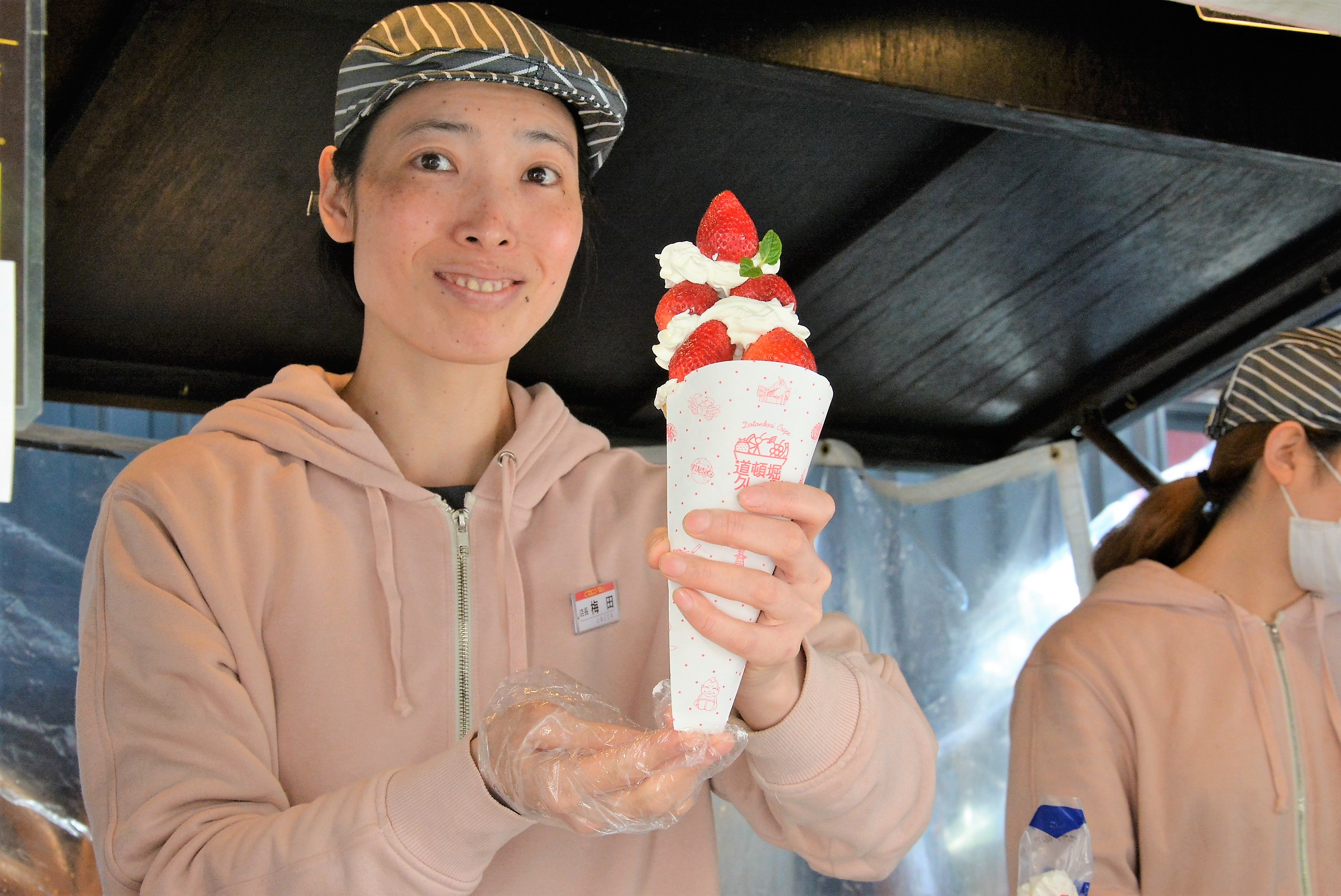 ド迫力の高さ30cmクレープ 「くい」ながら「たおれ」 ちゃうかも?! 「道頓堀くいだおれいちごタワー」 3月に販売スタート!