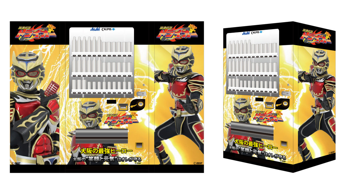 ご当地ヒーロー「浪速伝説 トライオー」が 自販機になって夏の大阪を見守ります! 「しっかり水分補給してや~」