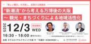 【勉強会のご案内】 "新潮流"から考える万博後の大阪 ~ 観光・まちづくりによる地域活性化 <日時>令和7年12月3日(水)16:30~18:00(受付 16:00~) <場所>ホテルロイヤルクラシック大阪 7F 「木漏日~KOMOREBI~」