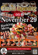 本格寿司99円~ 大衆寿司の新基準、誕生。 本店オープンから約3か月、 連日満員御礼につき早くも2号店オープン 11月21日(金)17:00~「寿司のたぬき 千日前店」 NEWOPEN!