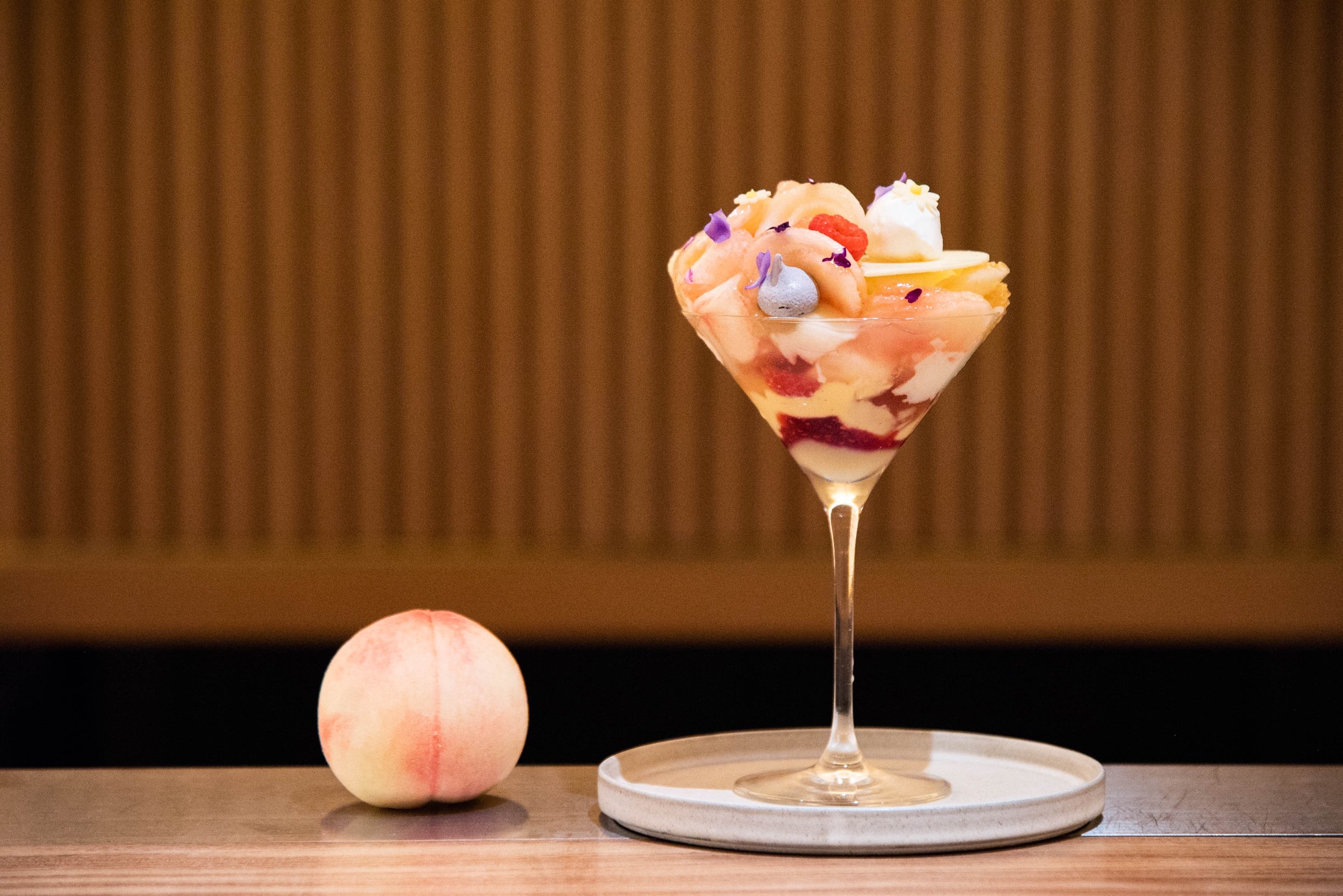 オールデイカジュアル・ダイニング「ERUTAN RESTAURANT/BAR (エルタンレストラン/バー)」 最旬素材を使ったクリエイティブなパフェ第6弾 「白桃とラベンダーのサマーパルフェ」を 2021年8月1日(日)より期間限定で販売!
