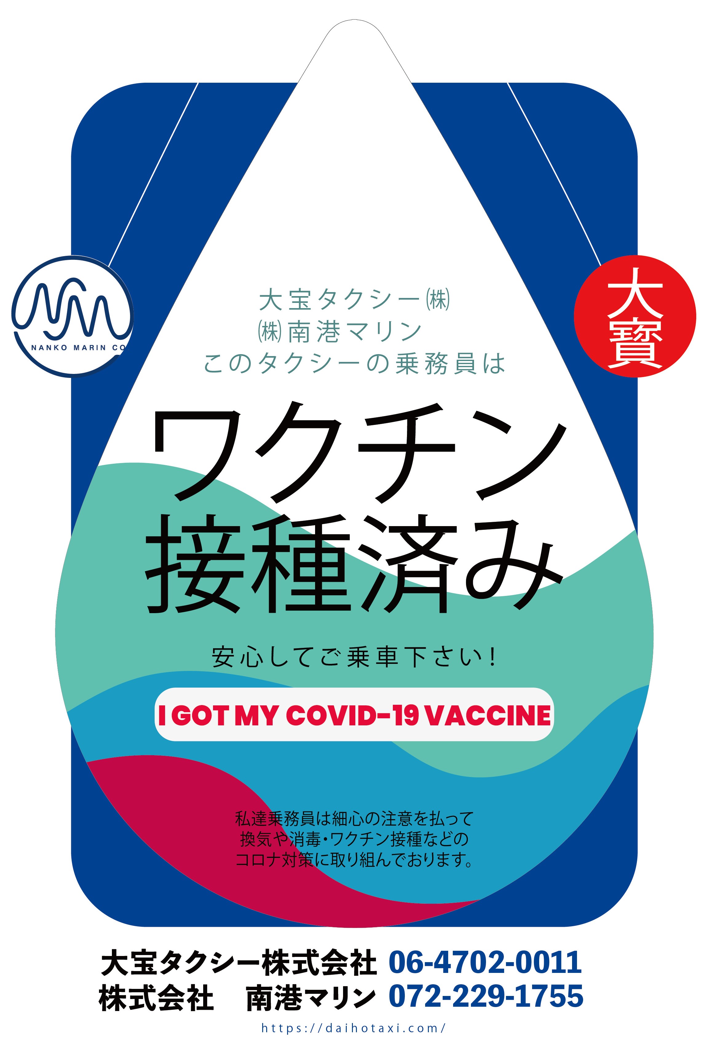 日本初!大阪で一番歴史のあるタクシー会社「大宝タクシー」が ドライバーの新型コロナワクチン接種済み表示を開始 2021年6月21日(月)~、お客様の感染不安の軽減を目指します