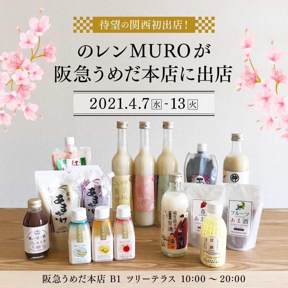 【待望の関西初出店】 日本随一の甘酒専門店『のレンMURO』が、 独自の基準で選りすぐった甘酒を 蔵元23社から約60種類ご用意し期間限定で出店! - 4/7(水)~13(火) 阪急うめだ本店 B1 ツリーテラスにて -