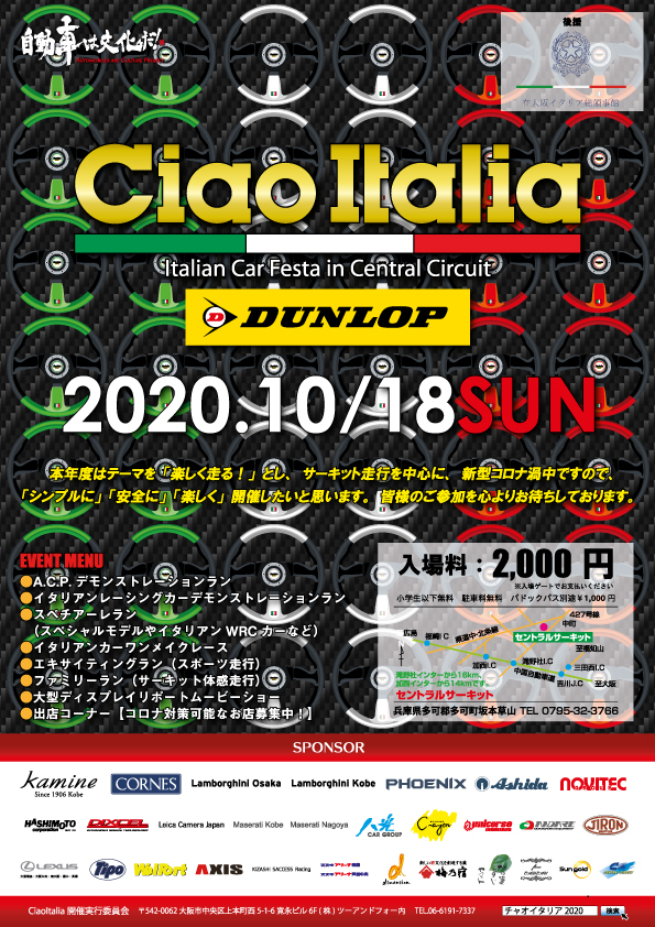Italian Car Festa in CENTRALCIRCUIT「CiaoItalia2020」Supported by DUNLOP イタリアンカーフェスタ「CiaoItalia2020 Supported by DUNLOP」