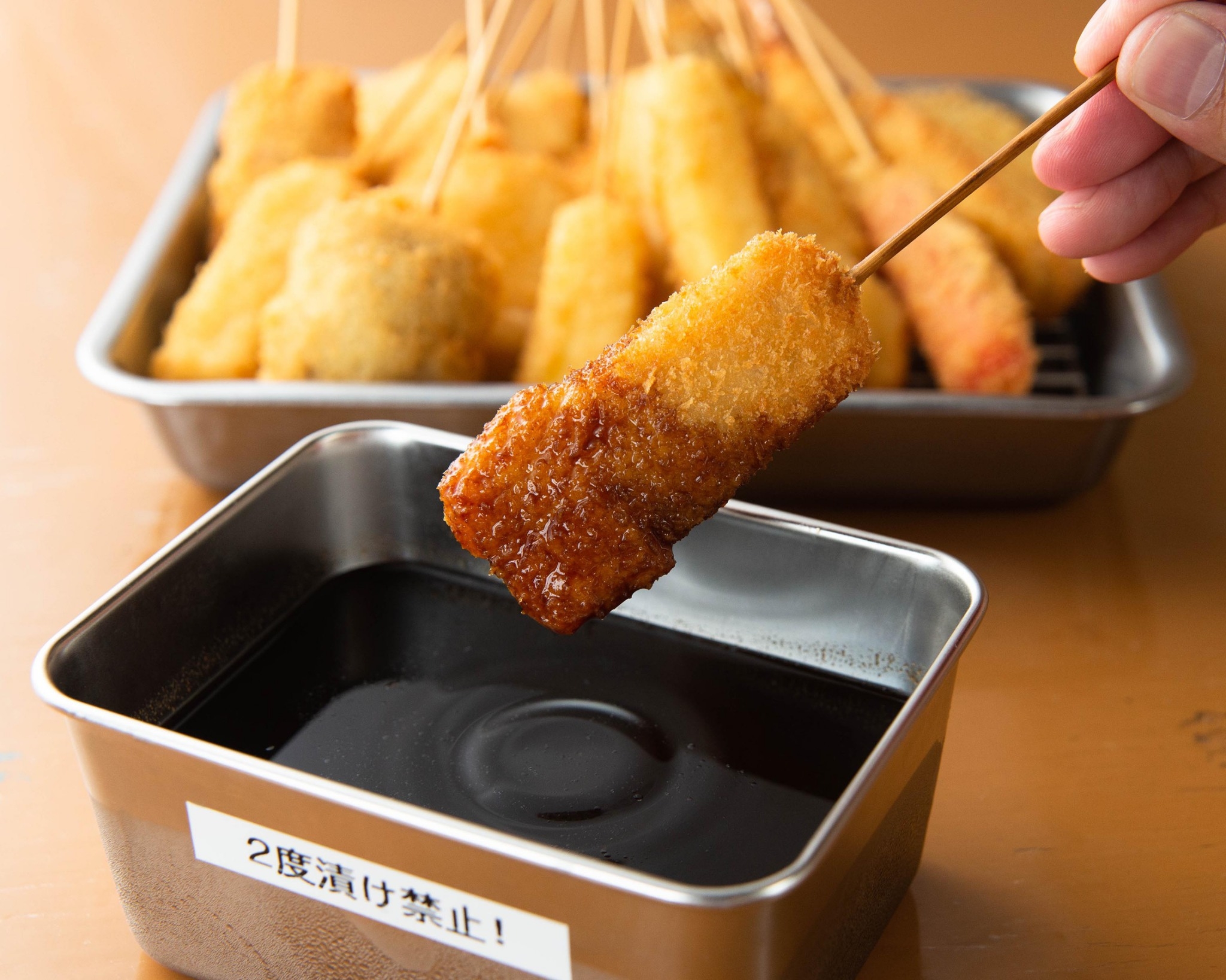 もう店舗では見られない「ソースの2度漬け禁止」の光景を自宅で完全再現 大阪・谷町の串カツ店が8/7「大阪名物二度漬け禁止セット」販売を開始 ~串カツ20本(冷凍)、ソース、ソース缶、キャベツのセットで2,222円。原価率80%超え~