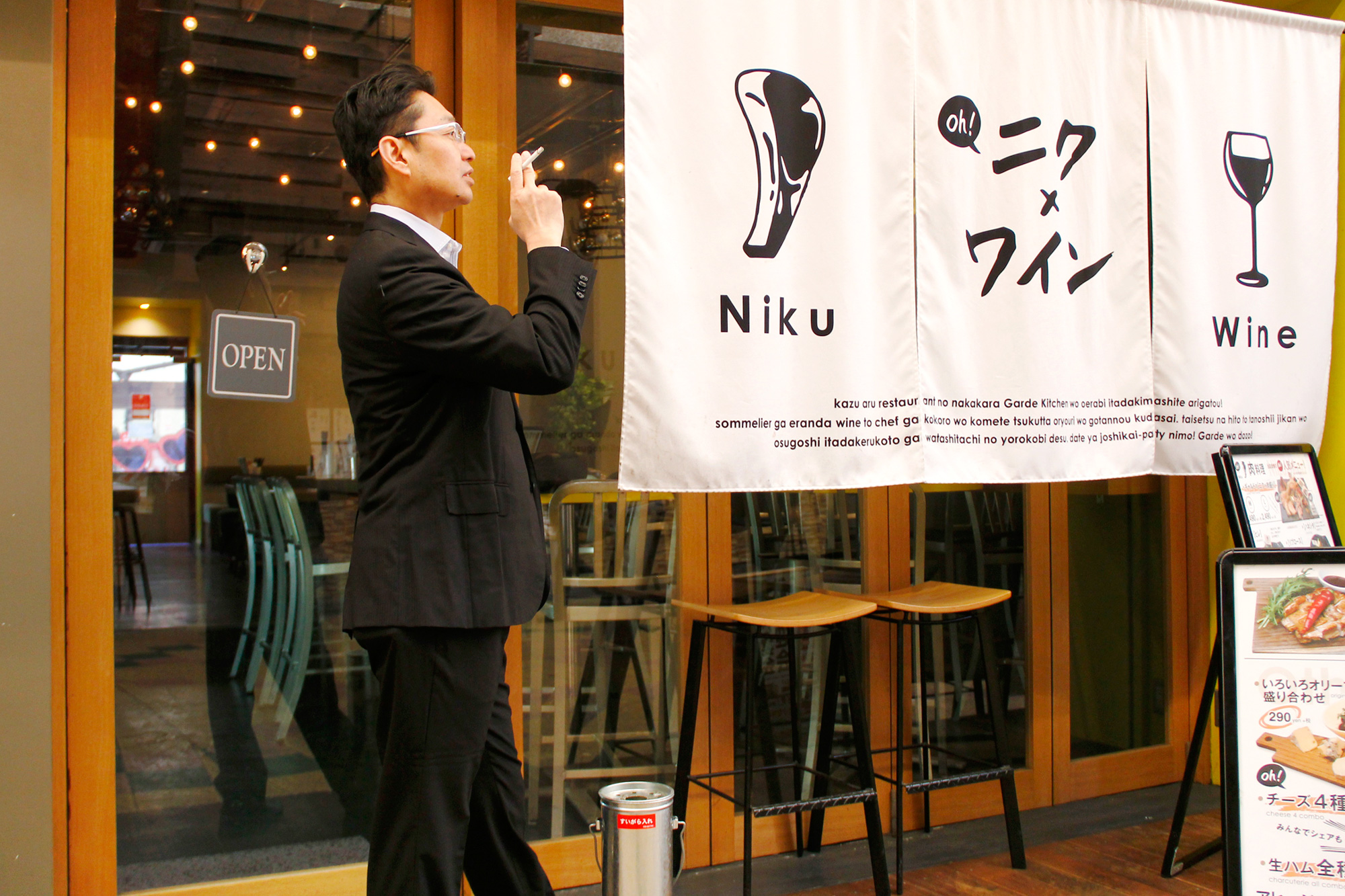 2020年4月の健康増進法改正で飲食店内の喫煙が厳しく制限されます 京橋の肉バル「ギャルド」でタバコを店の外で吸ってくれたお客様に 席を立つごとに「詫びワイン」を提供
