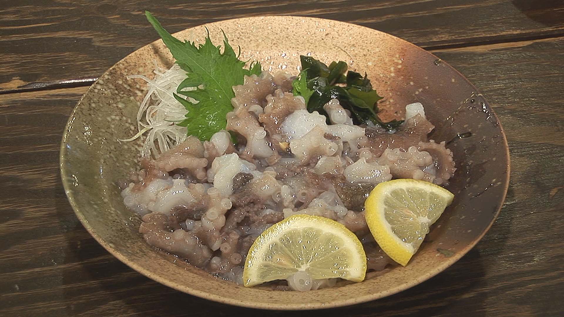 新鮮なタコの旨みと口の中で吸盤が吸い付く感触、歯ごたえがやみつきになります。