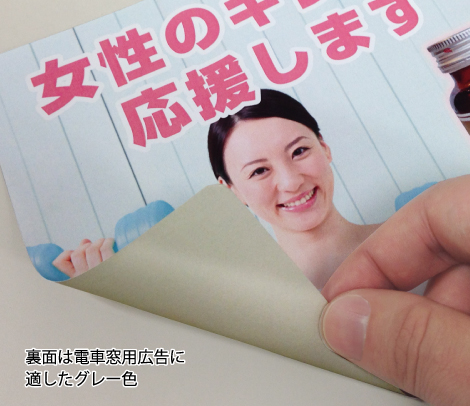 裏面は電車窓貼りに最適なグレー色で