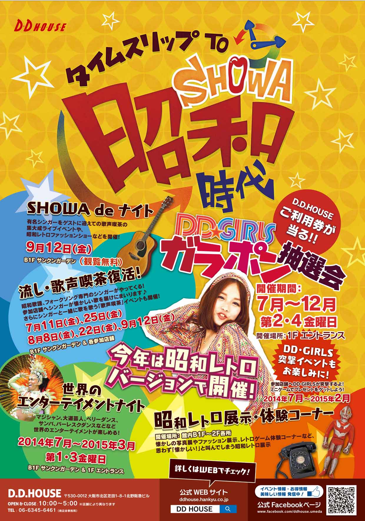 大阪・梅田の商業施設D.D.HOUSE(大阪市北区芝田1-8-1)は7月1日(火)から3カ月にわたり、昭和40年代〜60年代を体感できるイベント「タイムスリップ TO 昭和時代」を開催いたします。