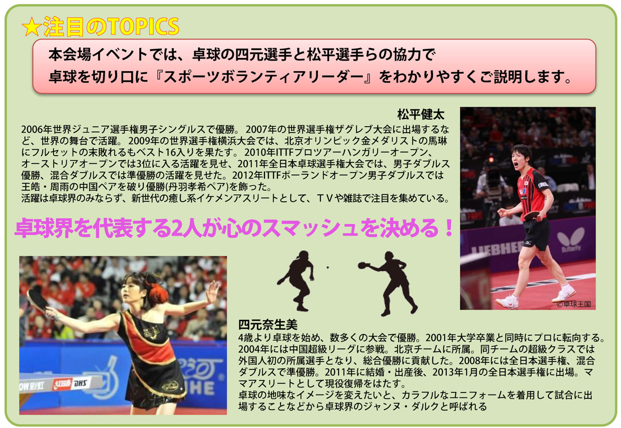 ■内容:スポーツボランティアの研究プロジェクトを共同で取り組む予定のカタール国よりゲストを招き、今回は卓球を切り口にしたスポーツボランティアリーダーをご紹介します。