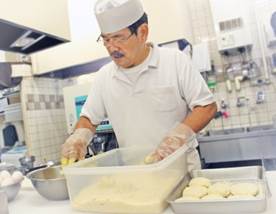 ミンチカツを作る創業者の上林勉