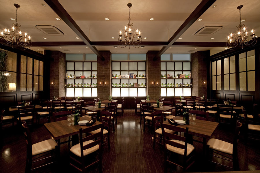 ○店舗内装は、イタリアのクラシックなリストランテを現代風にアレンジした落ち着きのある空間
