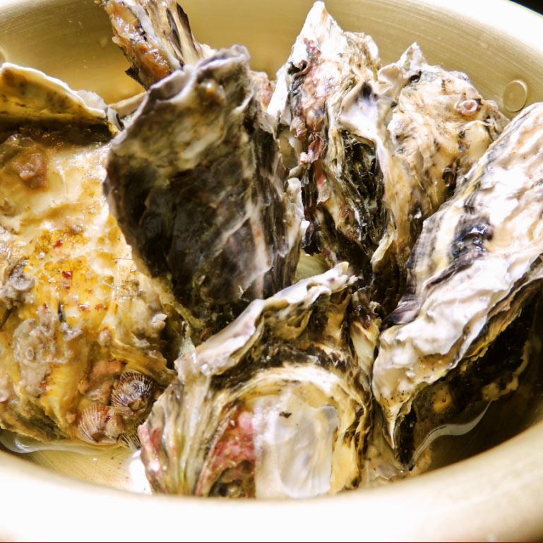 名物は牡蠣の風呂鍋。殻つき牡蠣が中に入っていて、牡蠣がお風呂に入っているようなインパクトたっぷりうまみもたっぷりの鍋です。産地にこだわった牡蠣は日本全国からその日のオススメの産地から入荷するので、一年中おいしいものをご用意させていただきます。