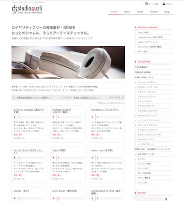 「studio guzli【スタジオグズリ】」は、2014年1月にオープンした、著作権フリーの音楽素材ダウンロードサイトです。