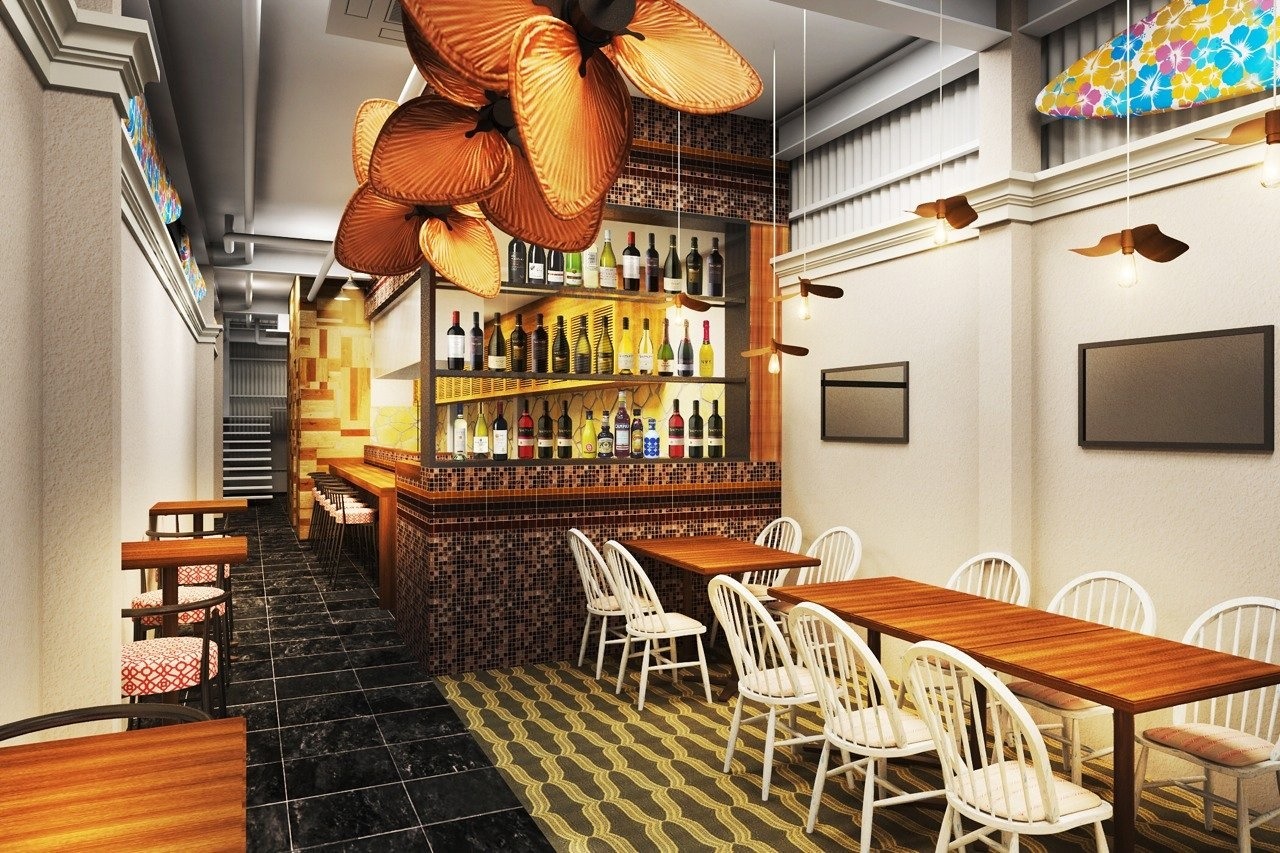 ピンクを基調とした鮮やかな外観の店舗は3階建て全119席。まるでハワイのリゾートにいるような開放的空間です。 テーマを「大阪ハワイアン」とし、食の街と呼ばれるこの「大阪」で舌の肥えた厳しいお客様にも満足していただける 「日本人の好きなテイストを盛り込んだハワイアン料理」を提案いたします。