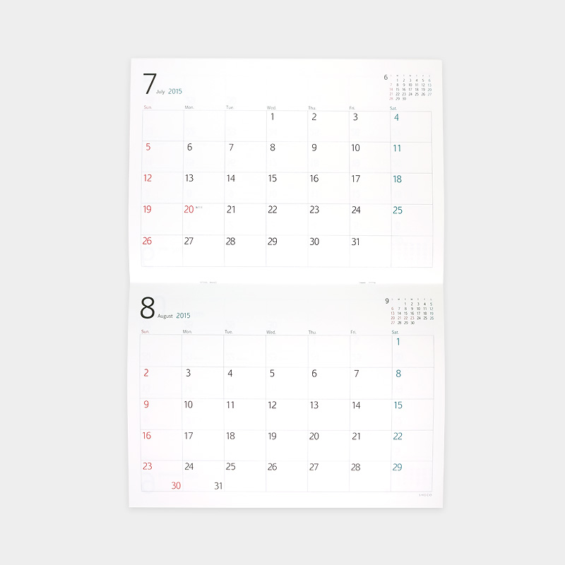「タイポノート」は、ノートのように使える新しいスタイルのカレンダー。2つに折りたたむと週刊誌サイズ(B5)になり、カバンに入れて手軽に持ち運ぶことができます。さらに、2か月タイプのカレンダーとして壁に掛けたり、業務スケジュール帳としてオフィスのテーブルに置いたり、スタイルに合わせて自由に活用できます。