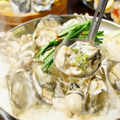1号店である三宮店の看板でもある「広島県直送の牡蠣」をふんだんに使った、豆乳土手鍋、牡蠣のキムチチゲ鍋、牡蠣の柚子塩の三種類からお好みの味を選べる設定!選んだ鍋にぎっしり詰まった直送牡蠣と新鮮野菜をグツグツと煮立てることにより、牡蠣から出る旨味のスープと出汁が絡み、磯の香りと出汁の風味が食欲を掻き立てられる。