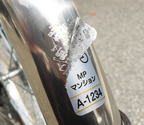 シールを剥がすと車体に「開封済」の文字が残り再使用できないハイグレードな駐輪シール。