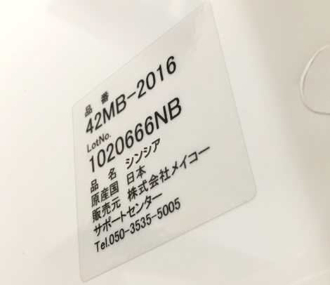 ロットナンバー(製造番号)や品番、サポート電話番号、社名や住所など