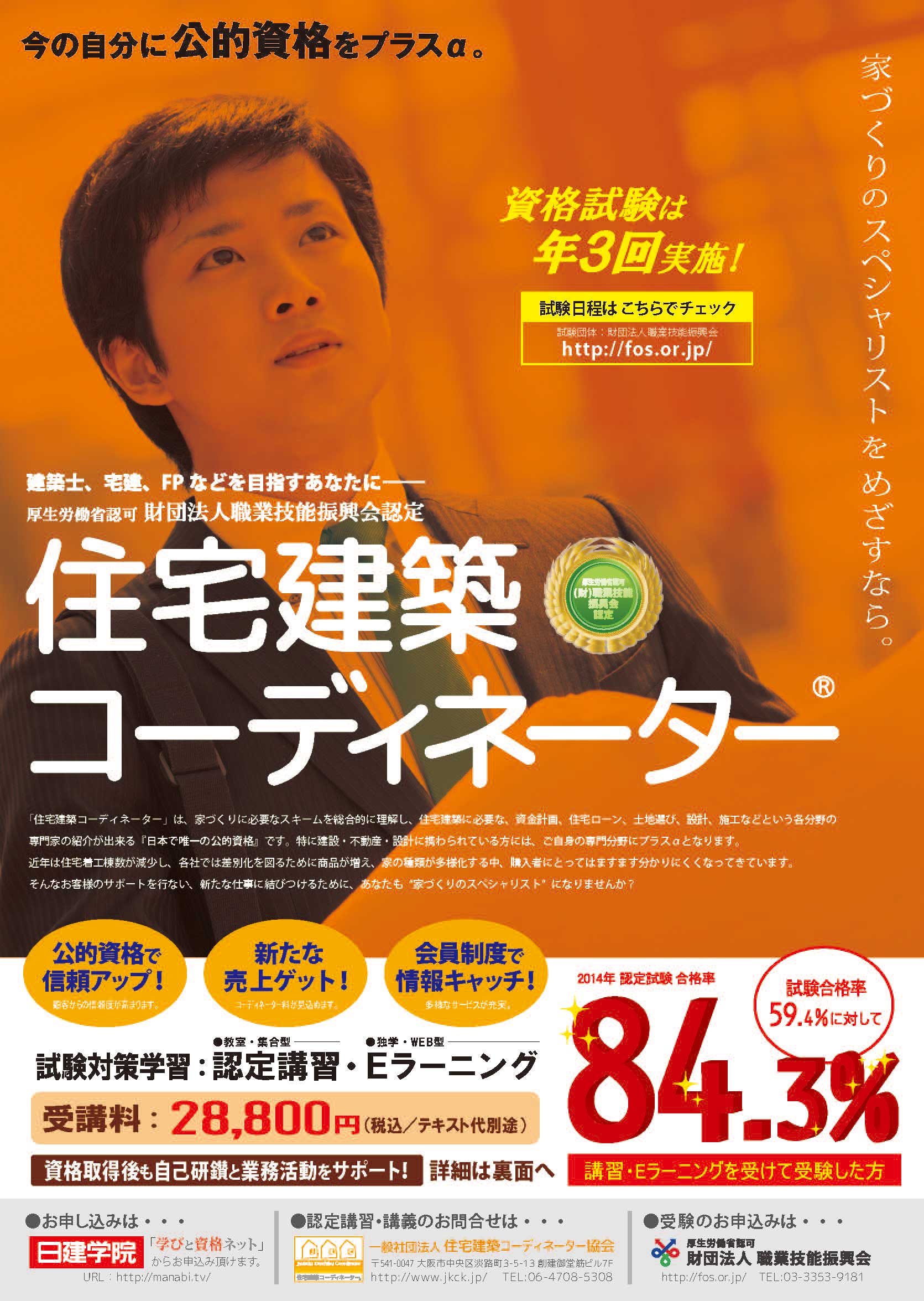 同資格はJKC協会が、家づくりに必要なスキームを総合的にまとめ、FOS振興会が認定する公的資格です。現在全国に約1,400名(本年3/8試験合格者含む)の資格者を輩出し建築・不動産・保険業界等で活躍しています。
