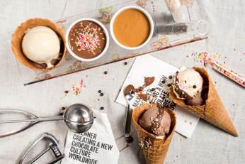チョコレートのテーマパークのような店内には、五感を刺激するインテリア、ユニークな食器、ポップなパッケージが並び、新しいチョコレートの楽しみ方など、今迄にないチョコレートエンターテインメントを提供します。