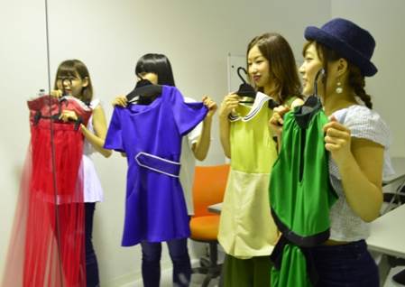 デザイン画通りの服が出来上がって喜ぶ学生たち