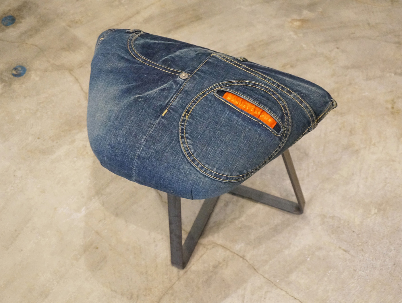 2015年5月からは、神戸で20年以上続くデニムブランドの「マニュアルレイバー」とコラボし、思い出のデニムパンツをスツールの座面の張り地にして残すというオーダーメイドサービスを開始。着れなくはなったが愛着があってタンスに入れたままになっている洋服やデニムなどをリメイク、家具に姿を変えてインテリアの一部として活躍している。