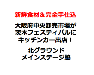 今回は茨木フェスティバル初となるキッチンカー出店で、普段は食のプロだけしか利用できず、一般の人は入ることが出来ない大阪府中央卸売市場の機能や新鮮な食材を市民の皆様、地域の飲食店や企業にもっと知っていただくこと目的に、市場活性化の一環としてイベントに登場します。