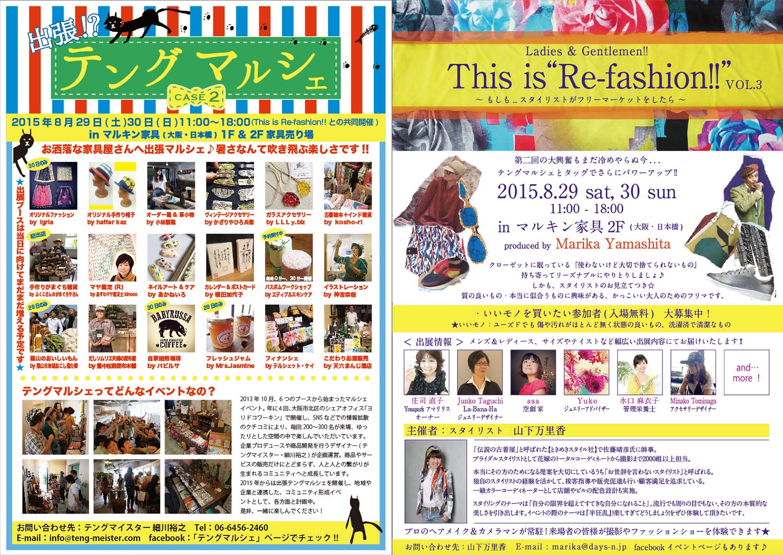 1つ目はスタイリスト・山下万里香が主催するファッションフリマイベント「もしもスタイリストがフリマをしたら~This is Re:Fashion!~」、2つ目はデザイナー・細川裕之が主催するマルシェイベント「出張!?テングマルシェ case2」です。