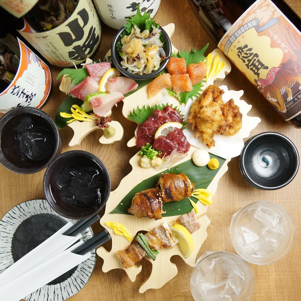 オープンを記念して期間限定の特別なコースをご提供いたします!鹿児島の黒毛和牛を使用したレアステーキや豪華な馬刺しの3点盛り、宮崎県産日南鶏のチキン南蛮など九州の旨みがたっぷり!OPEN記念特別価格3480円です!
