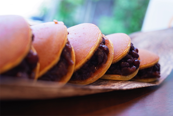 どらやきからはみ出すほどのインパクトのある餡、上質な食感・味、風味豊かな香り、そして耳に心地よい菓銘(名前)まで、五感で味わえるどらやきとなりました。