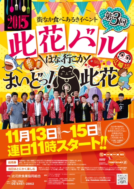 2015年11月13日(金)から11月15日(日)の日程で、第3回此花バルを開催します。
