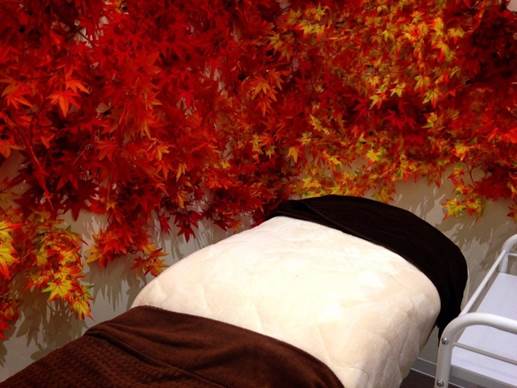 パーテーションで区切っている施術部屋4室のうちの1室を紅葉で覆った「紅葉ルーム」。