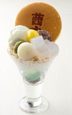 「ラムネあんパフェ」は、まるふじの「和パフェスタイル」は崩さず、茜丸のラムネあん、どら焼きをミックスさせました。