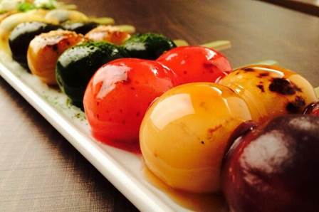 洋菓子のようにカラフルで楽しくて、アレもコレも食べてみたくなる「まるふじだんご」。「みたらしあん」や「つけ焼き醤油」などスタンダードなものから「カレーあん」や「ピザ」など変わりダネを含め全12種類を用意しています。
