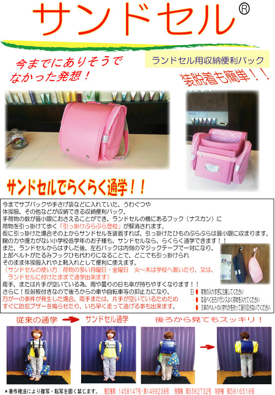 全国の小学生の子供たちの通学の際、安全安心と身体の負担軽減を無くす小学生通学便利グッズを製造販売中です。