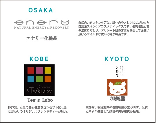エナリー化粧品(大阪)、Tea's Labo(神戸)、加美屋(京都)との合同企画です。