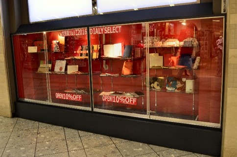 店頭横にあるショーケースには、文房具ソムリエのオススメの商品を展示・販売し、最新の文具のトレンドが分かるようになっています。