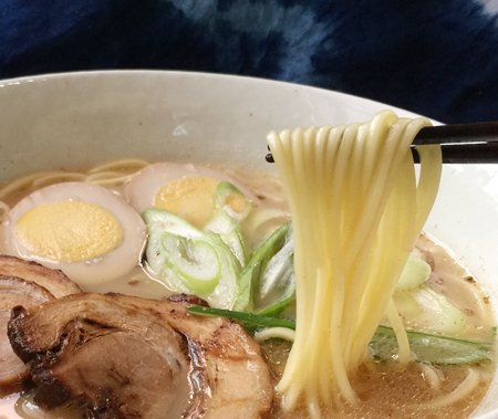昇竜軒本舗の麺は兵庫県播州地方特産の素麺、揖保乃糸の製麺技術で培った多加水製法と熟成による、もちっとした食感とコシのある細麺です。