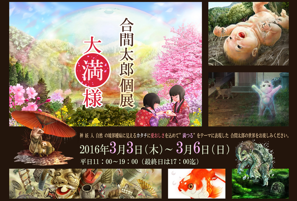 数々の妖怪本、妖怪ゲームのイラストを手がけてきた合間太郎がこの度、初の個展となる合間太郎個展~大満様~を2016年3月3日~6日の期間にて開催致します。