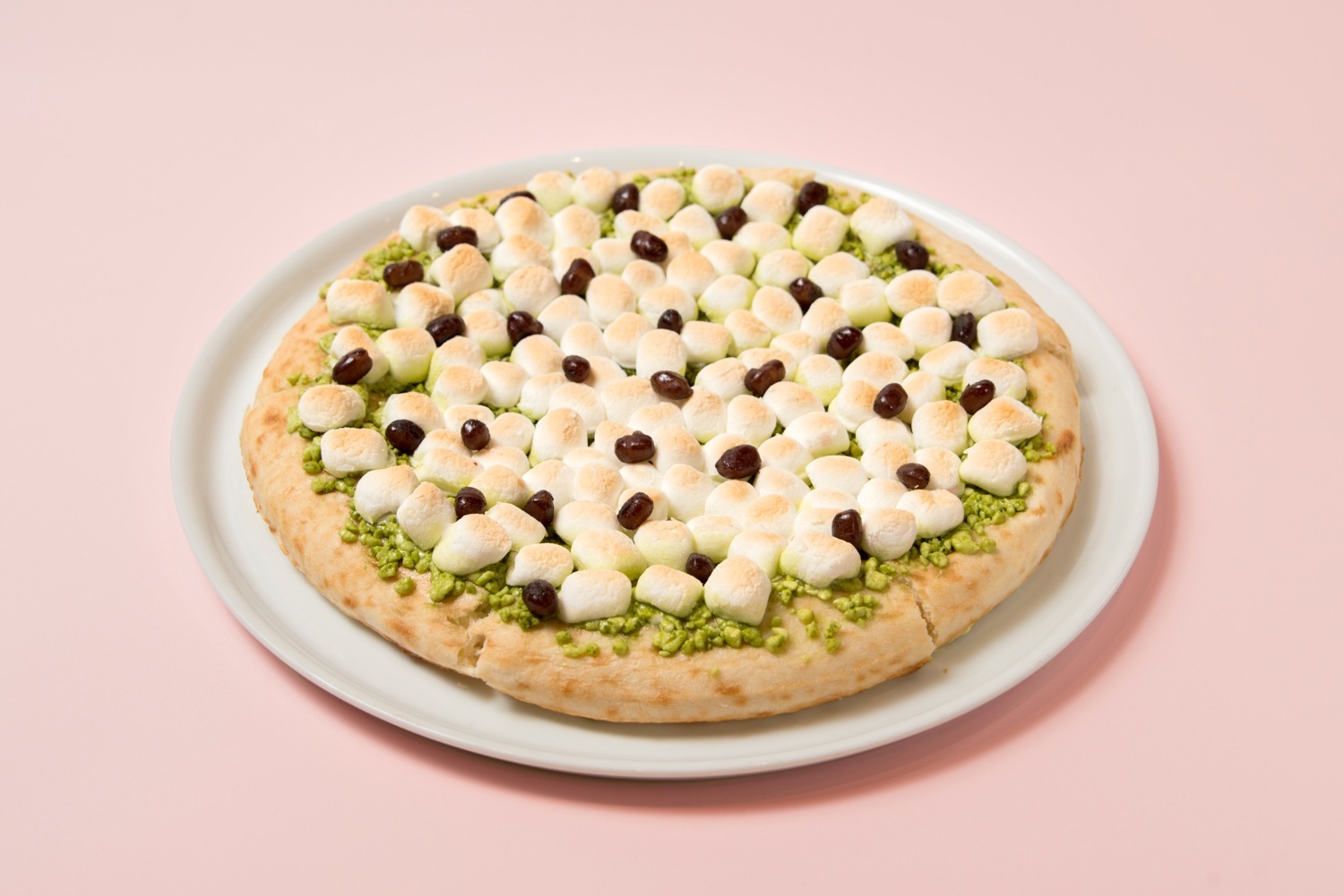 ホワイトチョコチャンクと抹茶の上にトーストしたマシュマロとかのこ豆をトッピングし、和テイストに仕上げました。抹茶のほろ苦さとホワイトチョコの上品な甘さをお楽しみください。
