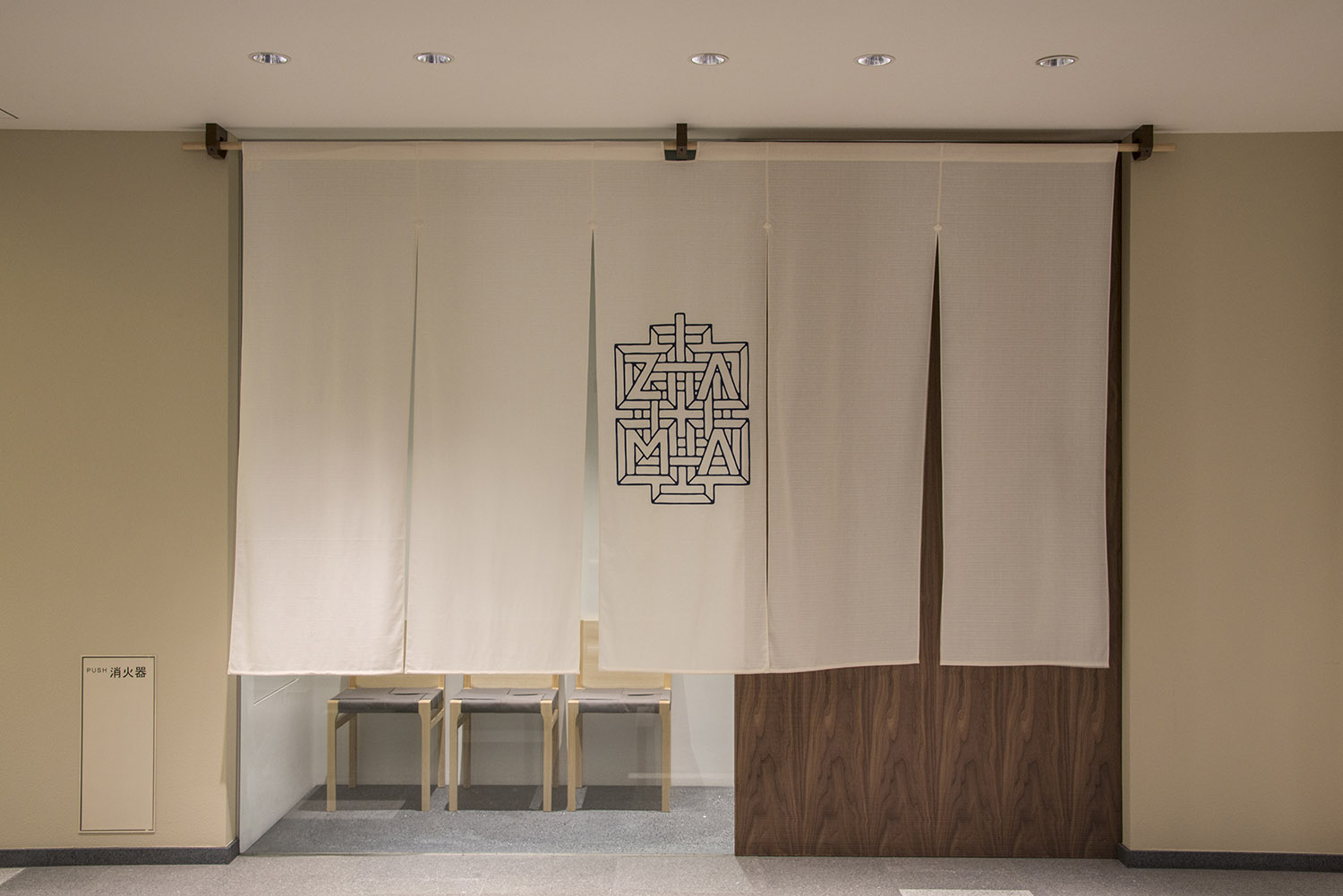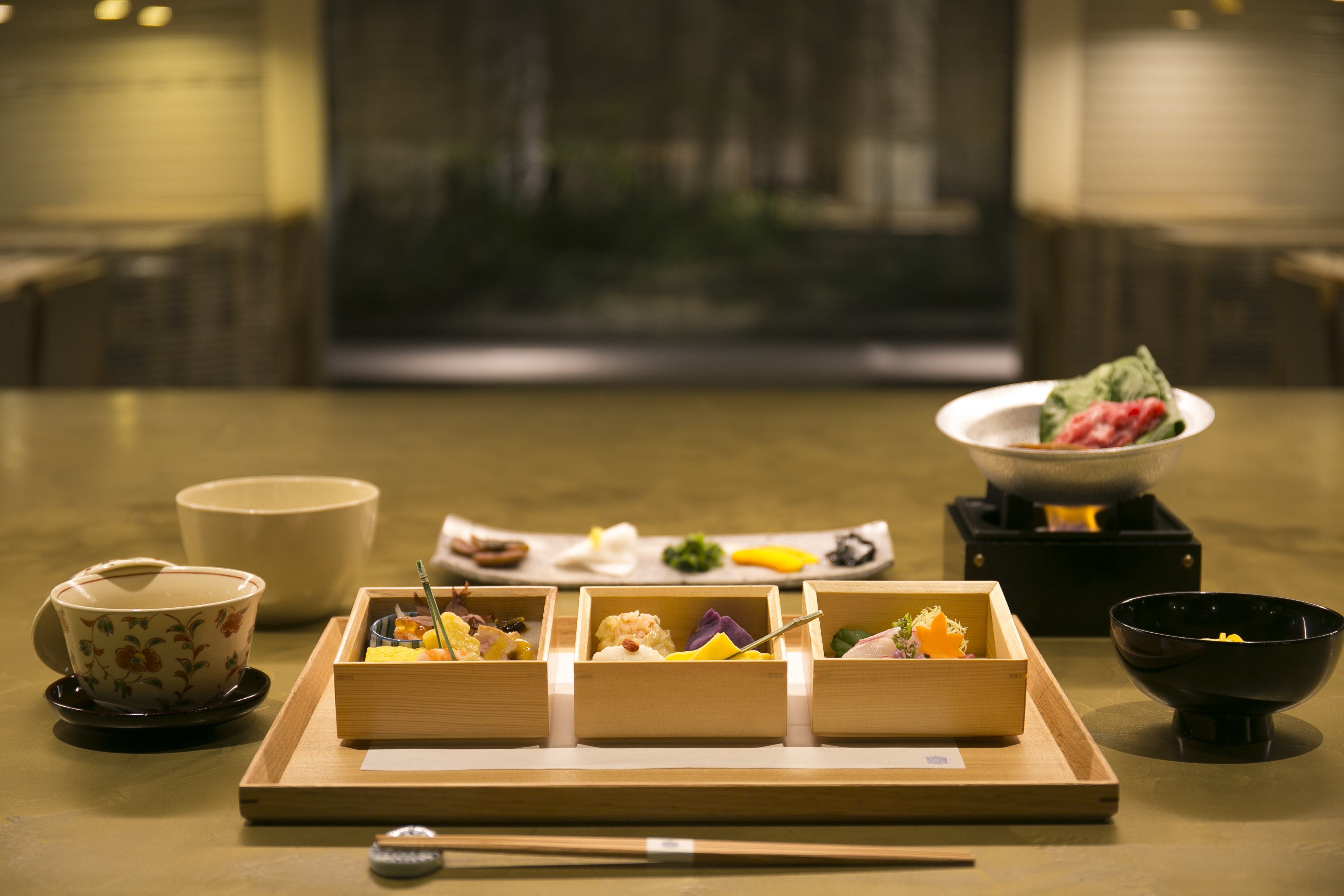 古い蔵と中庭を望む当店は、空間デザイン・建築家に永山祐子氏、家具製作にランドスケーププロダクツの中原慎一郎氏、ロゴデザインを鈴木直之氏(DIAGRAM)、そして料理監修に日本料理の巨匠、神田川俊郎氏を迎えました。